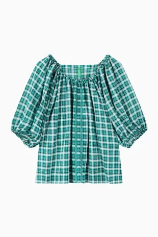 배색 플라워 패턴으로 페미닌한 무드를 연출하는 블라우스.