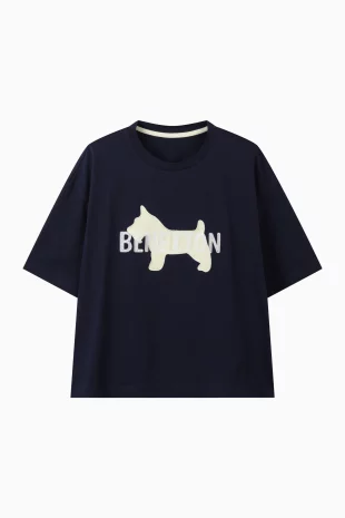 배색 버터플라이 프린팅과 로고 레터링으로 디테일을 더해줌.