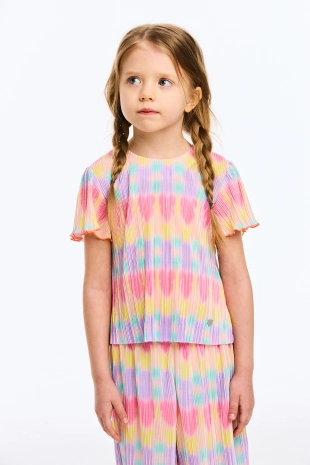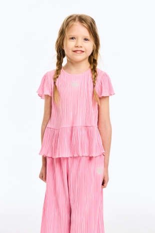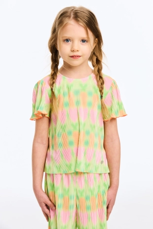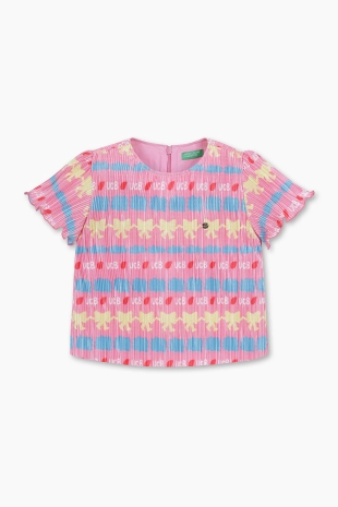 은은한 광택감이 도는 플리츠 디자인이 유니크한 블라우스.