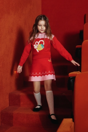 밑단에 배색 하트 자수 디테일를 적용하여 포인트를 더해줌.