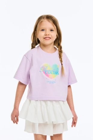 입체감이 느껴지는 컬러 프린팅이 돋보이는 반팔 티셔츠.
