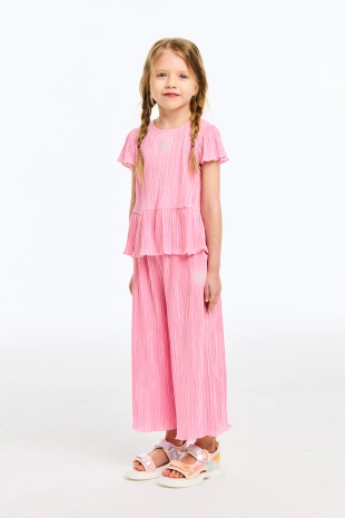 은은한 광택감이 도는 플리츠 디자인이 매력적인 8부 팬츠.
