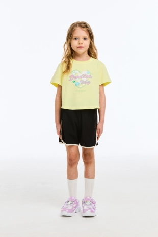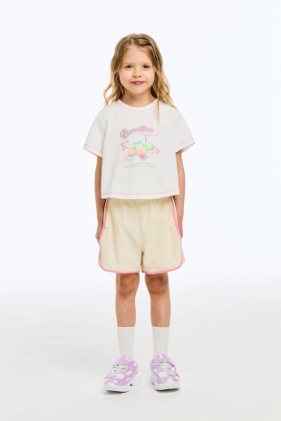 하트 로고 우븐 패치와 배색 컬러 라인이 포인트인 3부 팬츠.