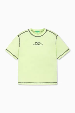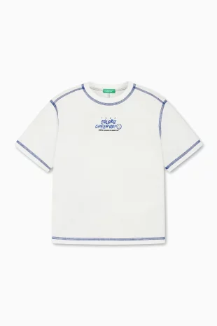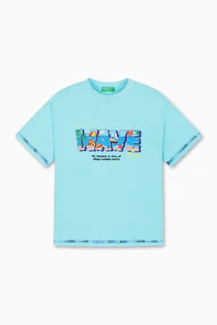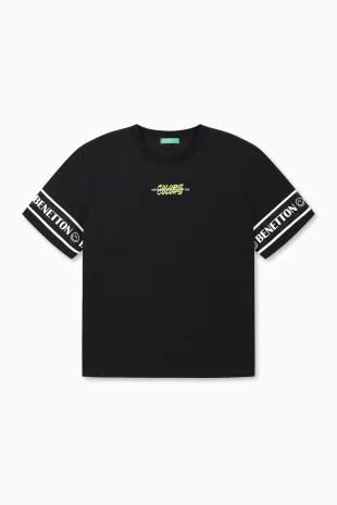 입체감이 느껴지는 전면 그래픽 프린팅으로 포인트를 준 티셔츠.