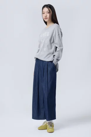 힙 한쪽 포켓의 리본 레터링 자수로 포인트를 더해줌.