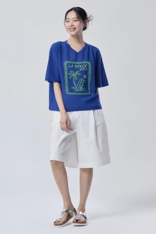 얇고 가벼운 소재로 웨어러블하게 착용 가능한 티셔츠.