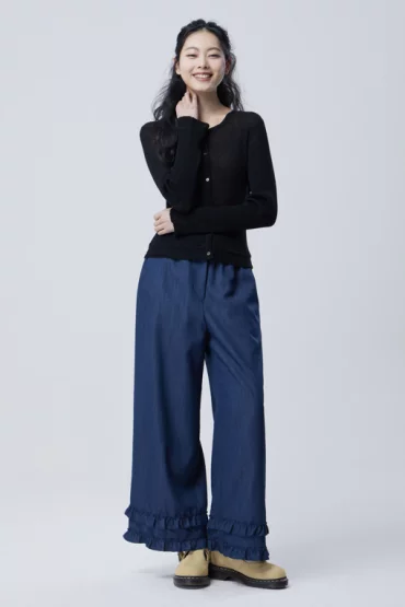 프릴 메쉬 니트 가디건