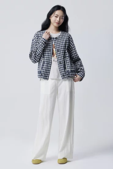 체크 자수 시어서커 점퍼