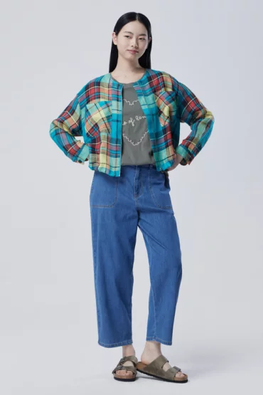 멀티컬러 체크 크롭 점퍼