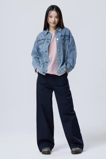 절개 라인 데님 점퍼