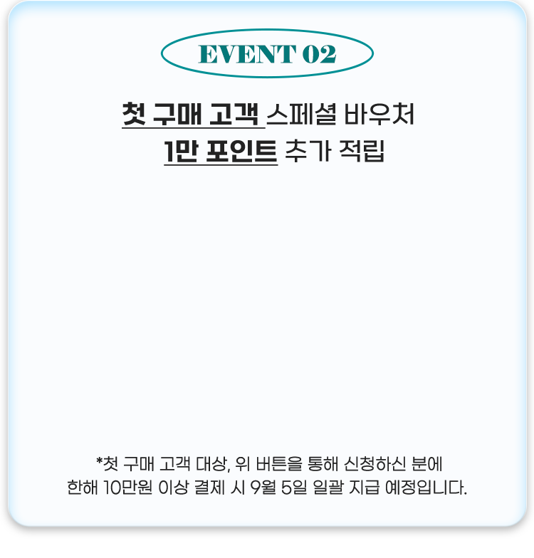 EVENT 2 첫 구매 고객 스페셜 바우처! 1만 포인트 추가 적립!