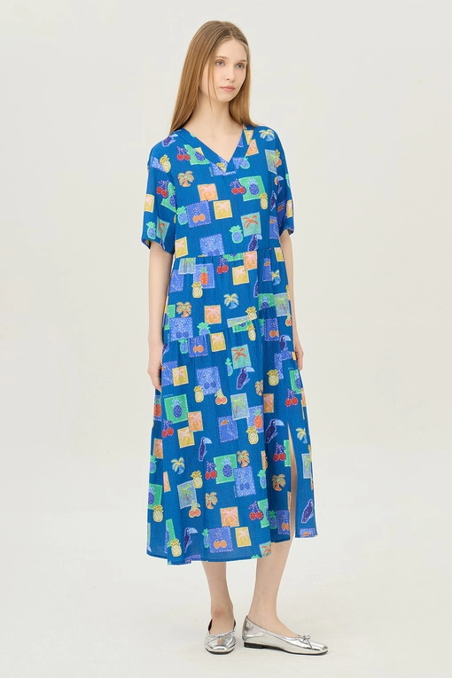 시원한 무드의 썸머 그래픽과 컬러감이 포인트인 롱 원피스.