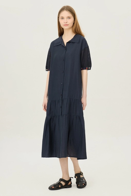 소매 니트에 컬러 자수로 포인트를 준 유니크한 감성의 원피스.