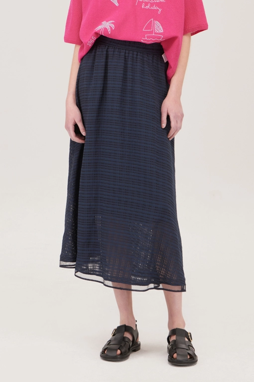 깔끔한 체크 패턴으로 페미닌한 무드를 연출하는 롱 스커트.