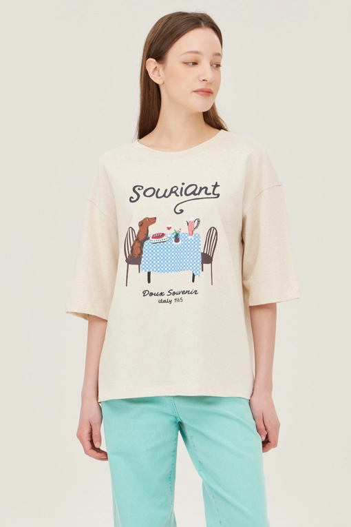 강아지 프린팅으로 위트있는 무드를 연출하는 반팔 티셔츠.