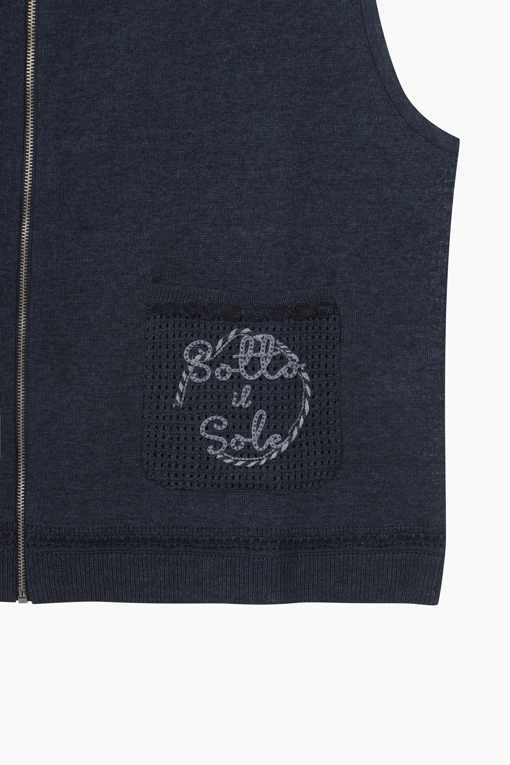 부분 블록 메쉬 짜임과 배색 라인으로 유니크한 후드 베스트.
