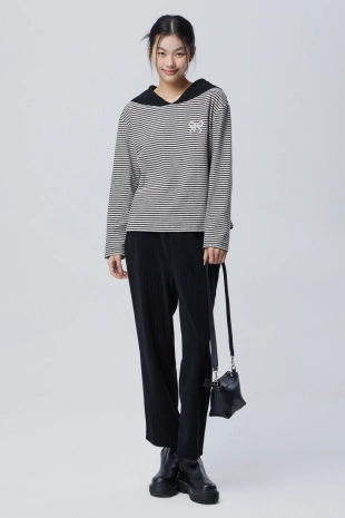 스트라이프 패턴이 더해진 캐주얼한 후드 티셔츠.