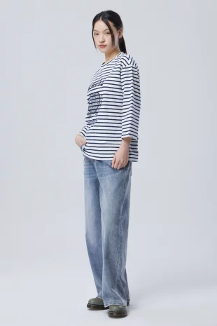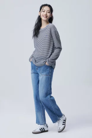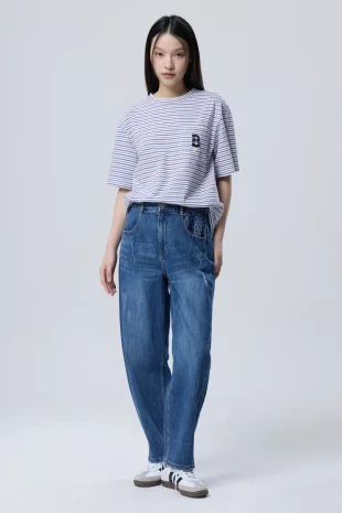 사선 포켓과 컬러 워싱으로 룩에 포인트를 더해주는 데님 팬츠.