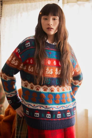 컬러가 믹스된 자카드 패턴으로 포인트를 준 니트 풀오버.