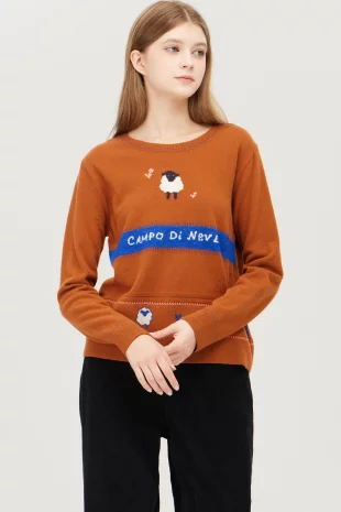 양 모티브 자카드 패턴으로 포인트를 준 니트 풀오버.