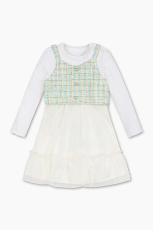 티셔츠에 뷔스티에 원피스를 레이어드한 듯한 원피스.