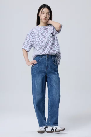라운드넥과 적당한 기장감으로 깔끔한 핏을 연출함.