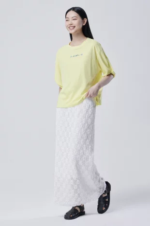 유니크한 립 조직으로 포인트를 준 웨어러블 티셔츠.