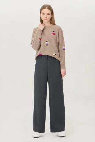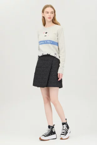 넥 라인과 소매단에 자카드 디테일로 포인트를 준 니트.