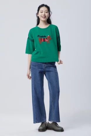 소매단에 배색 크로셰를 블록하여 포인트를 준 니트.