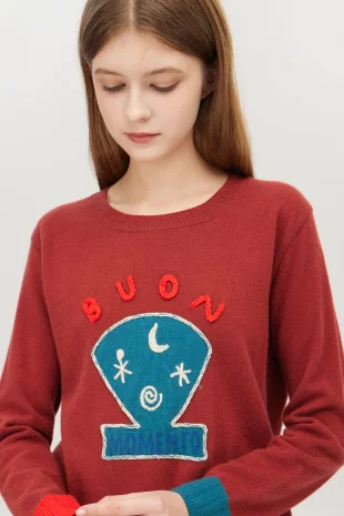 소매단에 배색 크로셰를 블록하여 포인트를 준 니트.