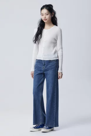 슬림한 핏라인이 매력적인 부츠컷 데님 팬츠.