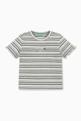 귀여운 배색 자수로 포인트를 준 골지 티셔츠.