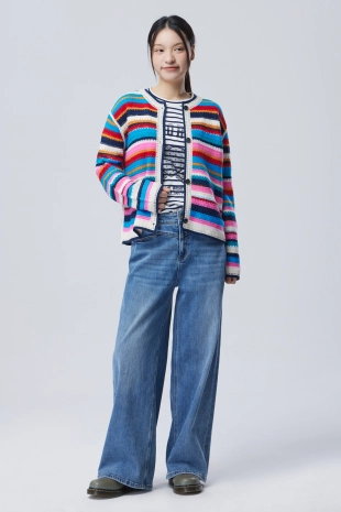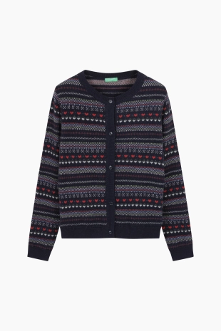 노드릭 패턴의 자카드가 더해진 캐주얼한 니트 가디건.