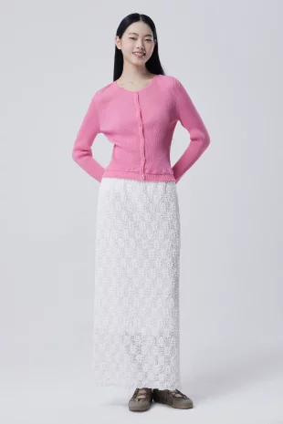 양 모티브의 자카드를 더해 포인트를 준 니트 가디건.