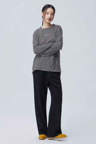 사이드에 두 줄 절개 라인과 자수 디테일로 멋을 더한 팬츠.