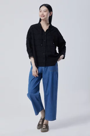 슬리브단에 턱 디테일을 적용하여 섬세한 포인트를 살려줌.